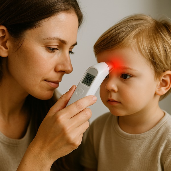 KFT-22 — современный медицинский термометр, использующий инфракрасную технологию для мгновенного и точного измерения температуры поверхности лба. Имеет международные сертификаты качества, успешно применяется в странах ЕС и США.