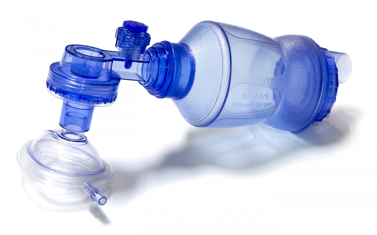 - Реанімаційний мішок та маска виготовлені з медичного ПВХ, безпечного для немовлят.