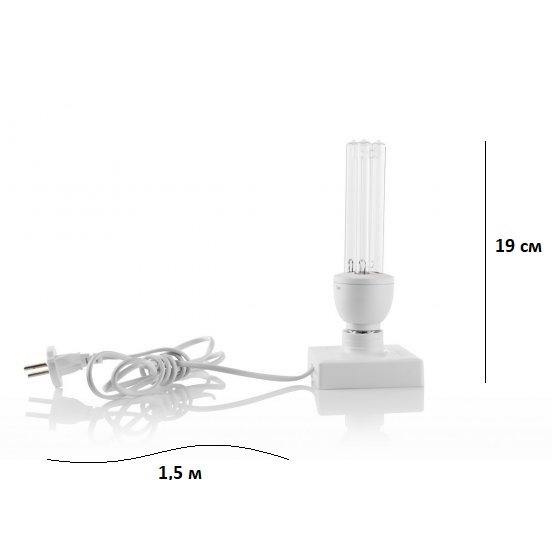 Ультрафіолетове випромінювання бактерицидного діапазону допомагає зменшити кількість мікроорганізмів у повітрі та на поверхнях. Лампа розрахована на приміщення площею до 20 м² при висоті стелі до 3 метрів.