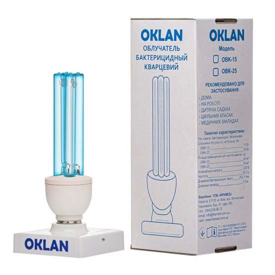 OKLAN OBK-15 — бактерицидна ультрафіолетова лампа відкритого типу, призначена для знезараження повітря та поверхонь у приміщеннях. Прилад використовується у житлових і нежитлових приміщеннях для профілактичної санітарної обробки.