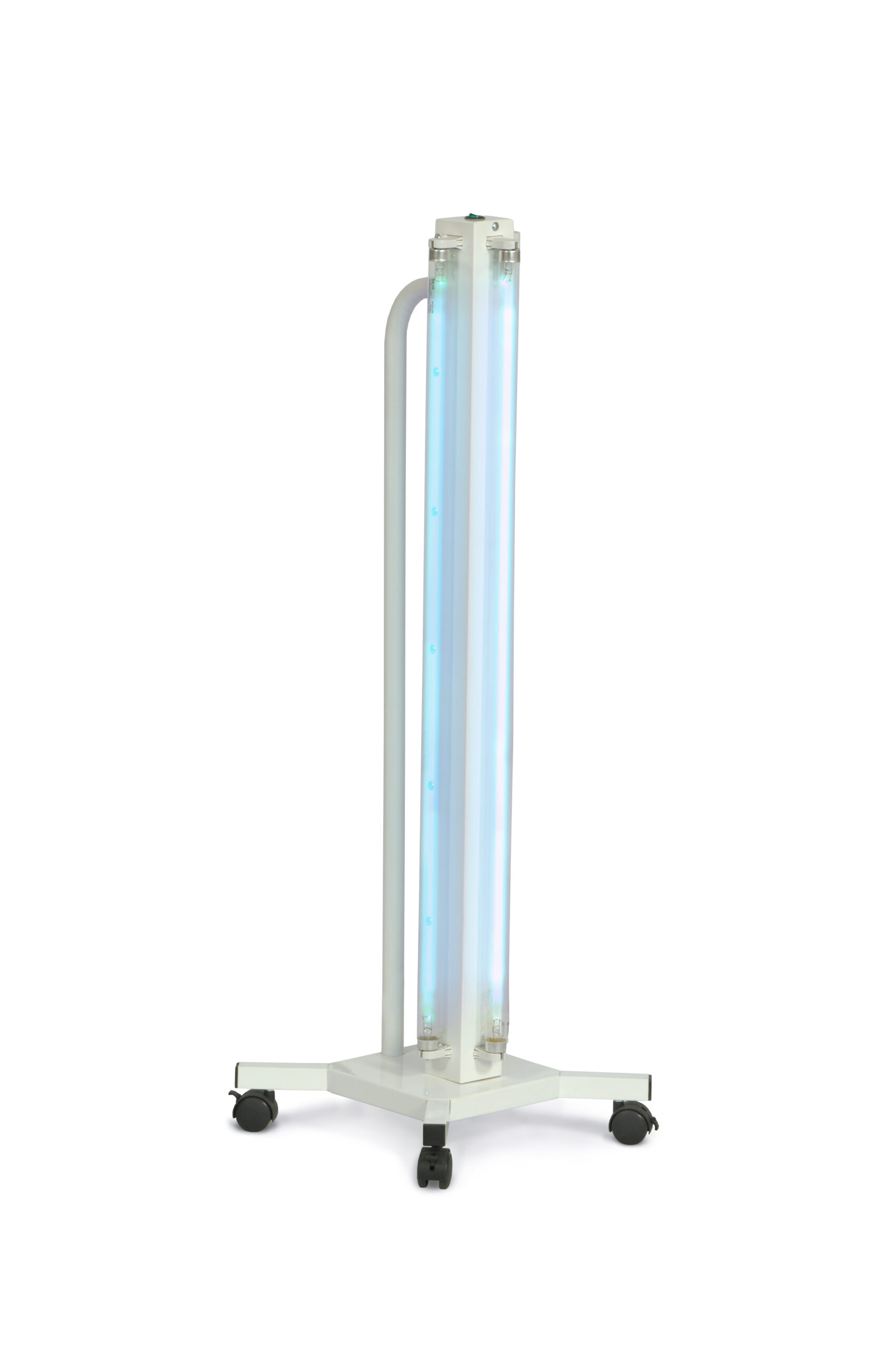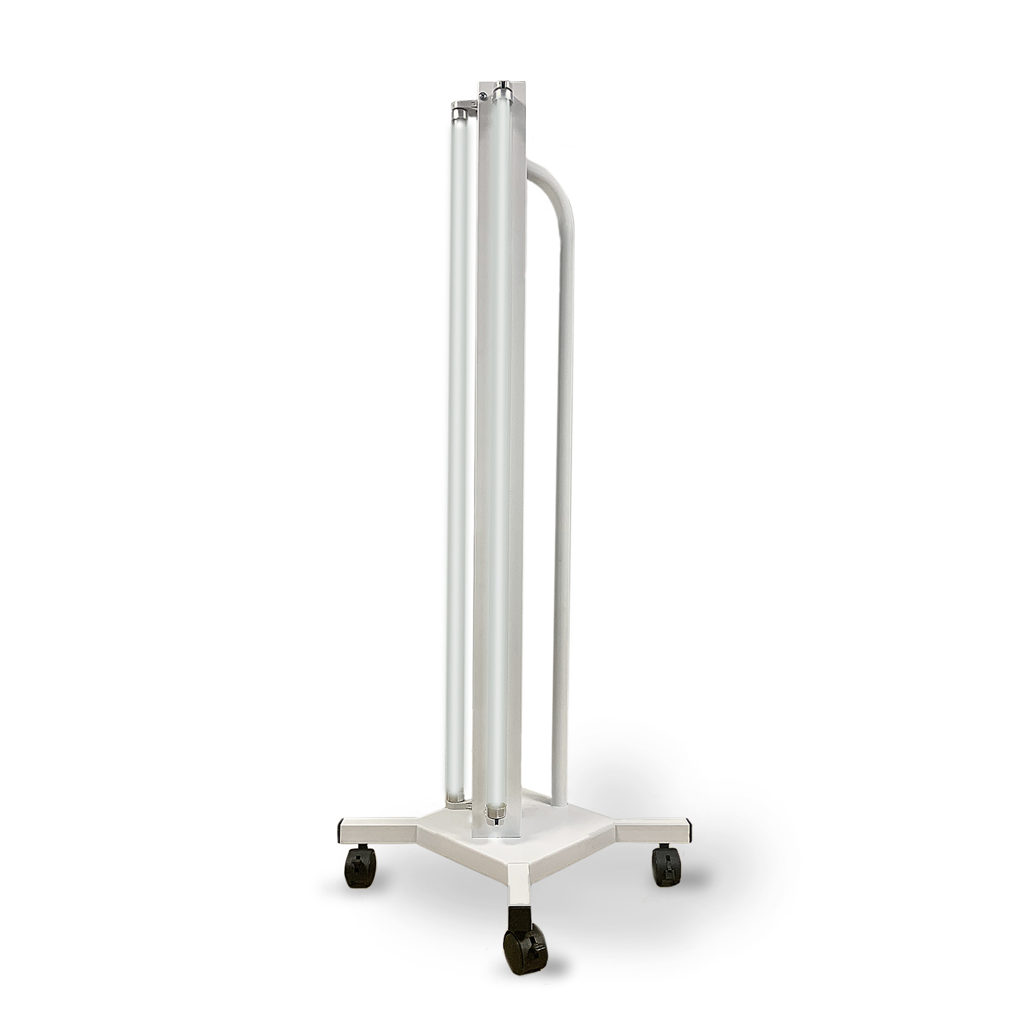 Завдяки пересувній конструкції прилад зручно використовувати для почергового знезараження декількох приміщень. Опромінювач встановлений на стійці з колесами та металевою ручкою для зручного переміщення.