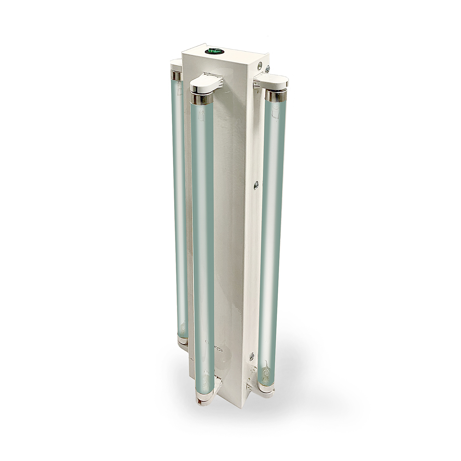 Медичний кварцовий опромінювач комплектується трьома відкритими безозоновими бактерицидними лампами потужністю по 15 Вт. Завдяки відкритій конструкції забезпечується інтенсивний ультрафіолетовий вплив на повітря і поверхні приміщення.