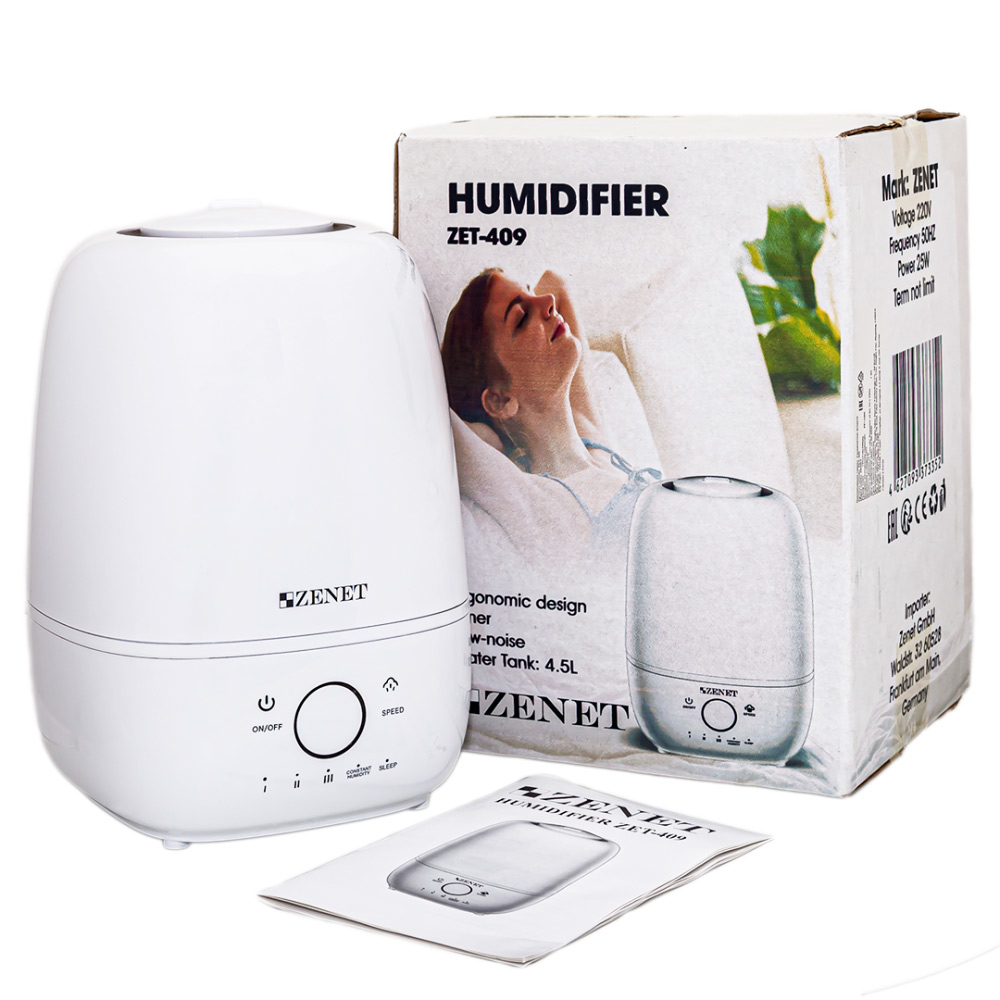 Zenet Zet-409 снижает сухость воздуха, характерную для отопительного сезона и помещений с кондиционированием, и способствует созданию более благоприятных условий для дыхания, сна и общего самочувствия.