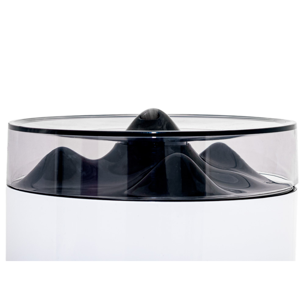 Увлажнитель формирует холодный пар с помощью ультразвуковой мембраны, равномерно распределяя влагу в помещении без нагревания воды.